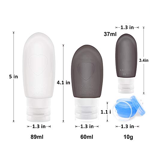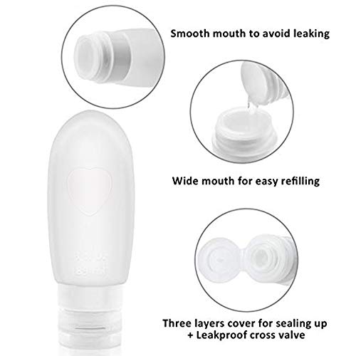 - [Botellas de viaje portátiles] - El botellas cosméticos está hecho de silicona de grado alimenticio de alta calidad,con propiedades suaves, a prueba de fugas y reutilizable. Y el 100% no contiene BPA. Cumple con todas las aerolíneas 3-1-1, ideal para viajes y viajes de negocios.
