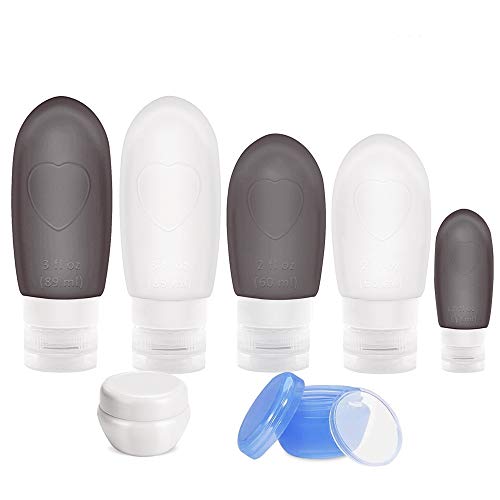- 【JUEGO DE BOTELLAS DE VIAJE】: El juego de botellas de viaje a prueba de fugas de 10 piezas incluye 4 botellas de viaje de silicona, 1 botella de spray, 2 cajas de crema, 2 cucharas, 1 embudo mini. Portátil y liviano, fácil de limpiar, perfecto para su viaje o viaje de negocios.