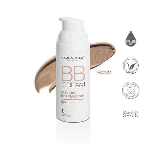 Simon & Tom – BB Cream – 3 Tonos – 50ML – Hidrata y alisa la piel con protección SPF 15 (Medio)