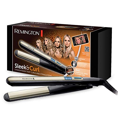 Remington S6500 Sleek & Curl - Plancha de Pelo, Cerámica Avanzada, Digital, Placas Estrechas Extra Largas, Negro y Dorado