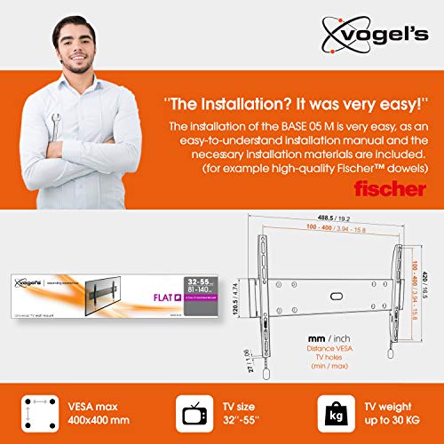 Vogel's Base 05 M - Soporte de Pared Fijo para TV 23 - 55", con Sistema VESA máx. 400x400, Carga máx. de peso 30kg