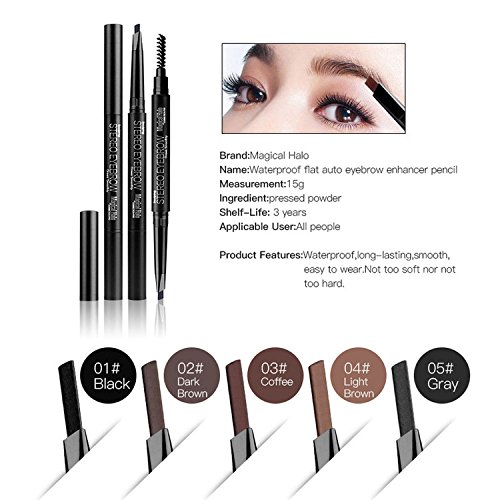 Magical Halo Lápiz de cejas Marrón oscuro Impermeable Ceja de precisión de doble punta (Marrón oscuro/Dark Brown # 2)