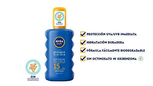 - Contenido del envío – NIVEA SUN Protege & Hidrata Spray Solar FP15, con protección UVA/UVB y resistente al agua, 1 x 200 ml, spray.