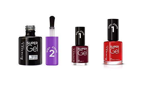 Rimmel London Super Gel Top Coat Tono Top Coat, 12 ml + Rimmel London Super Gel Colour Esmalte de Uñas Tono 91-47 gr + Rimmel London Super Gel Esmalte de Uñas Tono 45-47 gr
