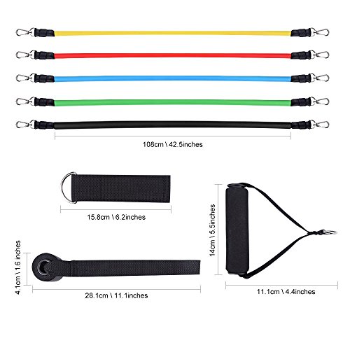 - ?【EL PRODUCTO INCLUYE / SERVICIO POSTVENTA】 5 x niveles de resistencia, 2 x asas acolchadas, 2 x correas de tobillo, 1 x anclaje para puerta, 1 x bolsa de transporte, 1 manual de ejercicio.Accesorios Completos, Puede Hacer Ejercicio Fácilmente En Casa, Ahorrar Tiempo para Ir Al Gimnasio.Si Tiene Alguna Pregunta Sobre Nuestros Productos, No Dude en Contactar Con Nosotros.