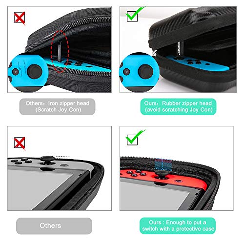 - 【Diseño Actualizado de la Cremallera】 Utilizamos cabezales de goma de alta calidad con cremallera, a diferencia de otros productos, la cabeza de cremallera de hierro rayará su precioso interruptor de Nintendo. Un paño de cremallera más ancho reduce la presión entre los elementos internos.