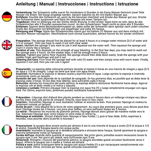 - ? AGRADABLE PARA LA PIEL & NATURAL: Las esponjas menstruales pequeñas son agradables para la piel y no contienen aditivos químicos. Esto las hace adecuadas para mujeres con sequedad vaginal.
