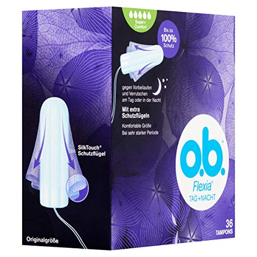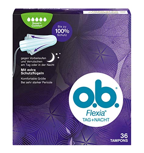 - O.b. Los tampones Flexia día + noche están disponibles en diferentes niveles de succión para satisfacer sus necesidades individuales, según la fuerza de su período.
