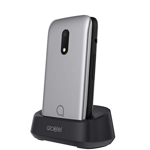 Alcatel 3026 - Teléfono móvil de fácil uso con tapa y base para cargar - botón SOS - Cámara 2MP con flash - teclas grandes - Plateado