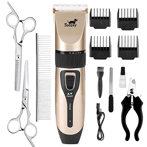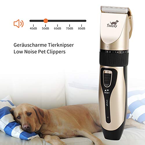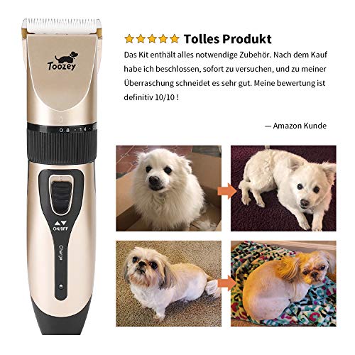 Toozey Cortapelos Perros Profesional para Cabello Grueso/Largo/Corto/Rizado - Kit de Maquina Cortar Pelo Perros de Silencioso Inalámbrico Recargable para Todas Las Mascotas, E-Book, Oro