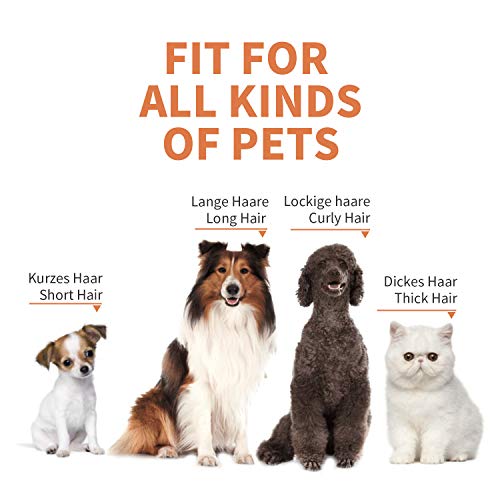 - ✔ ️ Se adapta a casi tipos de animales domésticos – Este cortador de mascotas es ideal para pelo grueso, largo, corto y fino. Por favor, tenga en cuenta que si sus mascotas tienen pelo largo y grueso, primero tiene que cortar con unas tijeras más cortas y finas, ya que de lo contrario las tijeras se enganchan y no pueden funcionar correctamente.