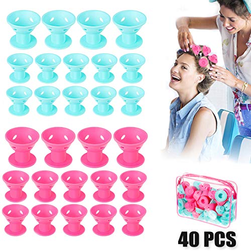 40 Pcs Rulos para el Pelo de Silicona, Flexibles Rizador Pelo, Sin Calor Suaves Bigudies Pelo, Magic Cuidado del Cabello Silicona Rulos