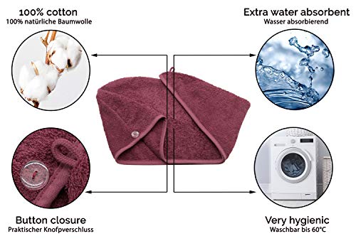 ZOLLNER Toalla Turbante para el Pelo, Rizo de algodón, Burdeos