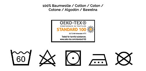 - El tejido es de algodón 100%, un material natural, suave y agradable al tacto. Se lava facilmente a máquina hasta 60° y se puede secar en la secadora.