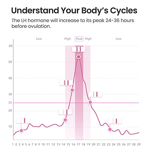 - ? Fácil de leer/Rápidos resultados: Nuestras tiras para pruebas de ovulación tienen una anchura de 3.5 mm haciéndolas más fáciles de leer. Sencillamente con sumergir la tira de orina durante 5 segundos, una clara línea le ayudara a elegir su momento más fértil sin tener que hacer suposiciones.