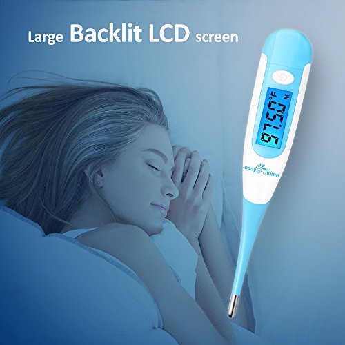- ? PANTALLA GRANDE AZUL CON LUZ DE FONDO: fácil de leer en la oscuridad. Recupera 30 grabaciones de temperatura en la memoria. A PRUEBA DE AGUA Y PUNTA FLEXIBLE: A prueba de agua y punta flexible del termómetro para fácil de usar y limpiar.