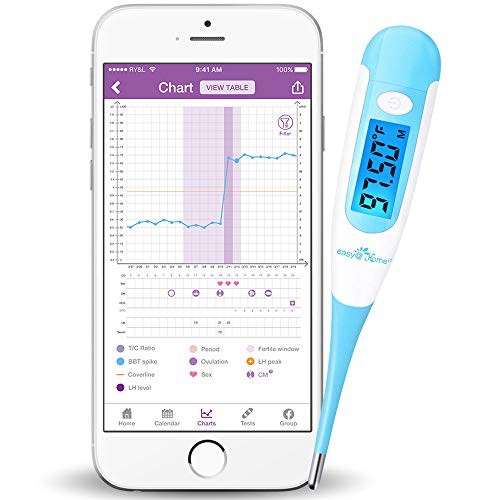 Termómetro basal digital Easy@Home Pantalla LCD con retroiluminación azul 1/100 grados de alta precisión para el seguimiento de la ovulación Aplicación gratuita Premom Español(Sin bluetooth)
