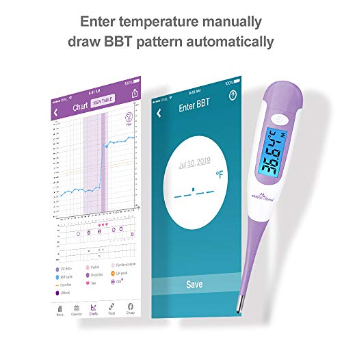 - ? MONITOREE SU CICLO DE OVULACIÓN: El termómetro basal lo ayuda a medir su temperatura basal con alta precisión de medición clínica para el monitoreo de la ovulación y la planificación familiar natural.
