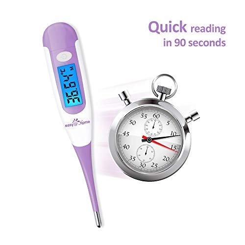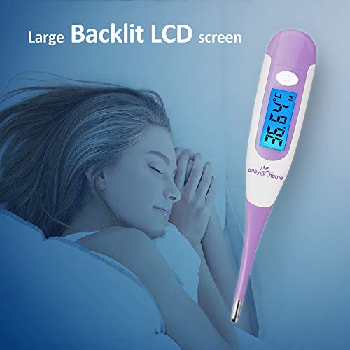Termómetro basal digital Easy@Home Pantalla LCD con retroiluminación azul 1/100 grados de alta precisión para el seguimiento de la ovulación Aplicación gratuita Premom Español Morada