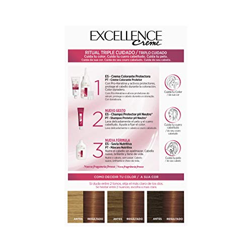 - Excellence Creme Triple Cuidado asegura un 100% de cobertura de canas cuidando tu cabello en cada etapa de la coloracion