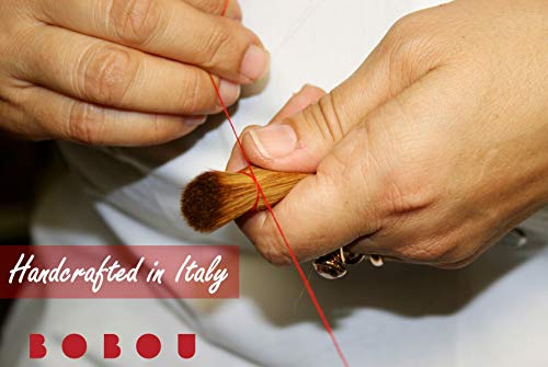 - Artesanía italiana y lujosa: los cepillos Bobou están orgullosamente hechos a mano en Italia por expertos artesanos de conciencia, utilizando sólo los mejores materiales. Construido con lujoso mango de terciopelo escarlata, virola de alta calidad y cerdas Dermafibra.