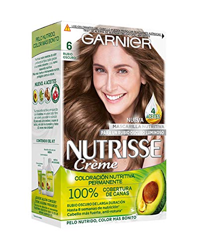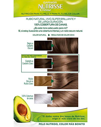 Garnier Nutrisse Creme Coloración Nutritiva Permanente, Tinte 100% Cobertura de Canas con Mascarilla Nutritiva de 4 Aceites - Tono 6 Rubio Oscuro