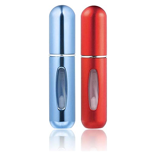 KAZOKU | 2 Piezas Atomizador Perfume Recargable 5ml, Botella Vacío Pulverizador Viaje en Bolso, Perfume Spray Frasco, Gel Alcohólico Desinfectante, Aluminio Recargable de Colonia (Rojo y Azul)