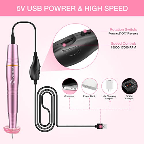 - ăLigero portĂĄtil y conexiĂłn USBă PortĂĄtil compacto y fĂĄcil de llevar a cabo. Y este taladro de clavos se puede conectar al banco de energĂa, a la computadora portĂĄtil o al adaptador del telĂ©fono usando el cable USB para comenzar a funcionar. Esta mĂĄquina de lima de Uñas elĂ©ctrica serĂĄ su mejor opciĂłn para sus obras de arte de uñas en cualquier momento y en cualquier lugar.