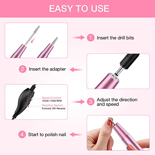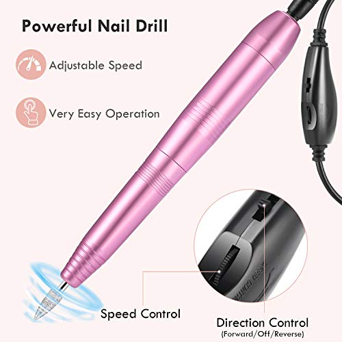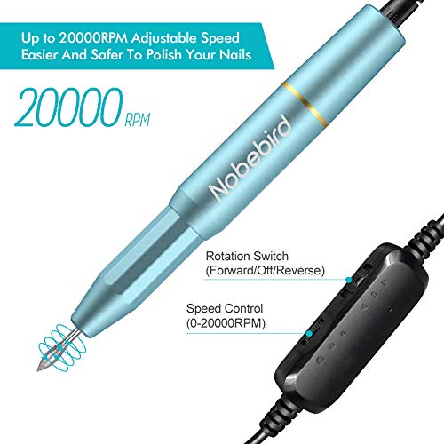 - ăVelocidad ajustable de hasta 20000 RPMă Hasta 20,000 RPM con un botĂłn de control de velocidad, lo que hace que este taladro elĂ©ctrico para uñas sea mĂĄs fĂĄcil y seguro para pulir sus uñas y puede controlar fĂĄcilmente las direcciones de rotaciĂłn presionando el botĂłn de avance y retroceso.
