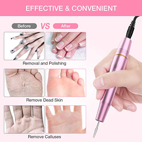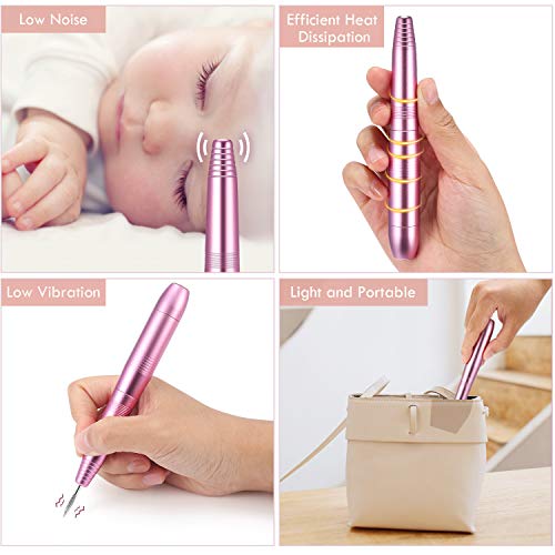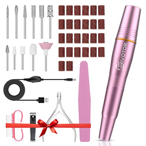 EIVOTOR Kit de Manicura ElĂ©ctrico, Torno para Uñas Portatil con Lima Electrica 11 Tipos de Brocas de Pulido RotaciĂłn hacĂa Derecha/Izquierda Ajustar la velocidad