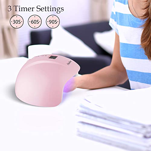 Lampara Led UV Uñas,Secador de uñas de Lampara uñas con 3 temporizadores de 30s, 60s y 90 s,Pantalla LCD, Ideal para uñas de gel y todo tipo de manicura (Rosa)