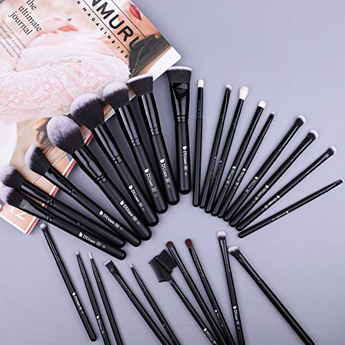 DUcare Brochas de Maquillaje Profesional Negro 27 pcs Maquillaje Profesional Pinceles Premium Synthetic Maquillaje de Ojos, Rubor, Contorno, Corrector, Pinceles Cosméticos