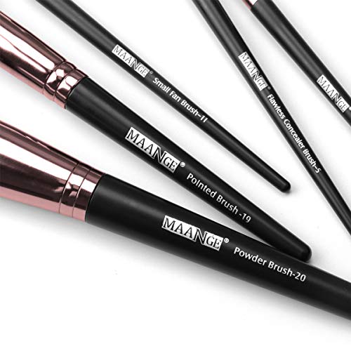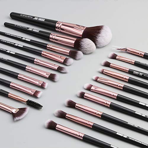 - JUEGO DE CEPILLOS DE MAQUILLAJE ESENCIALES: este juego de pinceles de maquillaje de 20 piezas incluye cepillos para sombra de ojos, sombra de pliegue, corrector, rubor, base, polvos presionados o sueltos, resaltador y cejas. Este kit de cepillos incluye todo lo que necesita para una aplicación de maquillaje de rostro y ojos de aspecto natural.