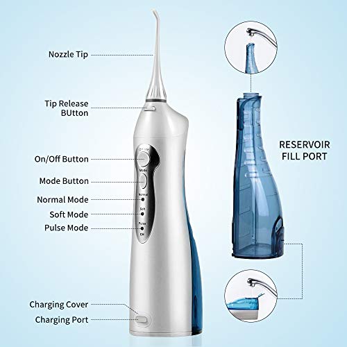 - 【3 modos de operación】 El hilo dental con agua tiene 3 modos de operación convenientes: Normal (dientes limpios) Suave (dientes sensibles) y Pulso (masajea las encías y fortalece los dientes). Satisface varias necesidades de cuidado bucal, evitando la formación de periodontitis