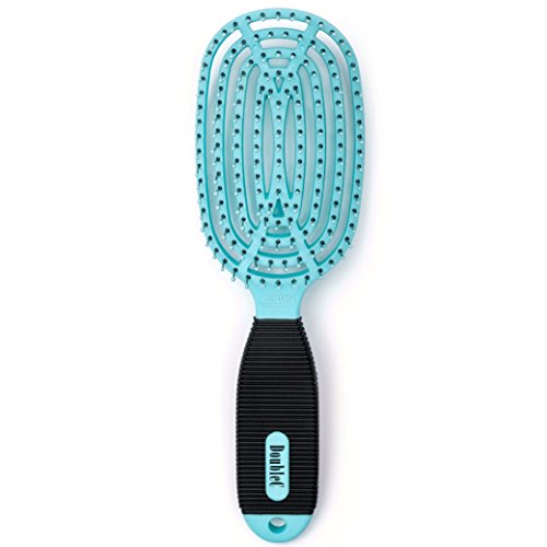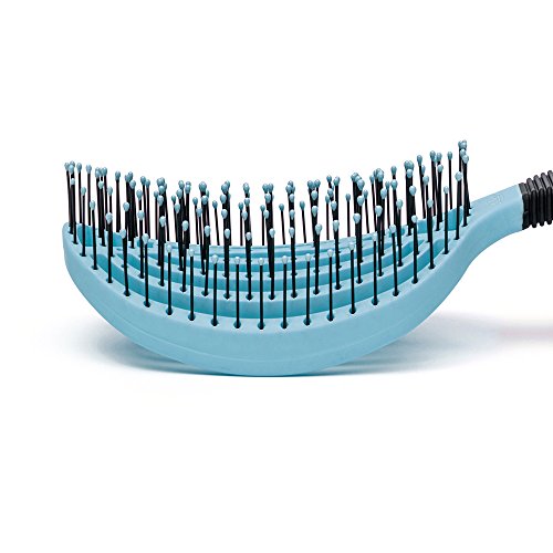 NuWay 4Hair! U.S. Patented Professional Detangling! DoubleC is Double Curved - BrainyBristles Argan Oil Tips Detangle Curly Wet or Dry Hair - No Pulling - Vented Back (Blue)