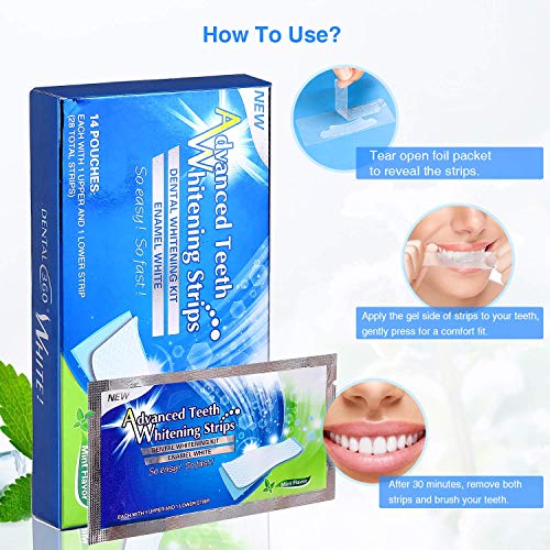 - ❤ Fácil de usar: solo siga los 3 pasos: despegue, aplique, revele.En solo 30 minutos, puede obtener blanqueamiento dental profesional. Las tiras de blanqueamiento de Whitening son muy fáciles de usar, para una sonrisa radiante sin esfuerzo.
