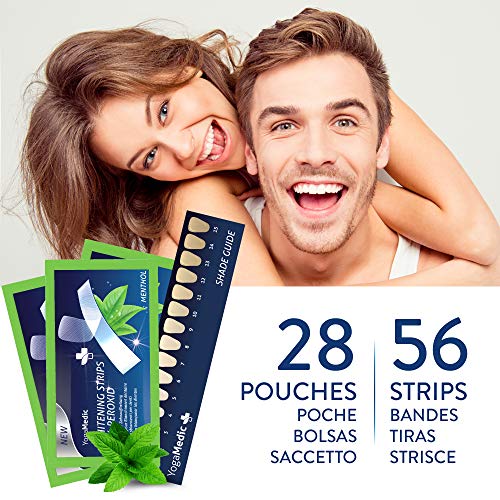 - ✅56 Tiras blanqueadoras de dientes con sabor a menta - 28 para la hilera inferior, 28 para la hilera superior