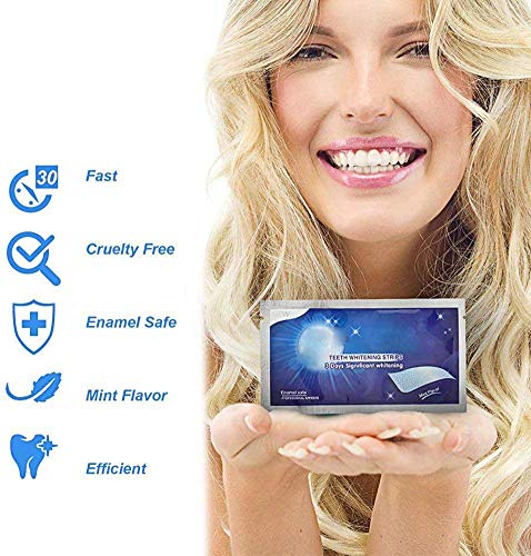 - Fácil de usar: solo en 30 minutos, puede lograr resultados profesionales de blanqueamiento dental. nuestras tiras de blanqueamiento dental son extremadamente fáciles de usar para una sonrisa radiante y sin problemas. No es necesario usar geles de blanqueamiento de dientes, kits de blanqueamiento de dientes complicados o luces de blanqueamiento de dientes.