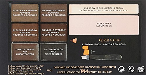 - Contiene 3 polvos para cejas en diferentes tonos, 2 ceras para cejas en diferentes colores, 1 lápiz para cejas y 1 iluminador en polvo y crema.