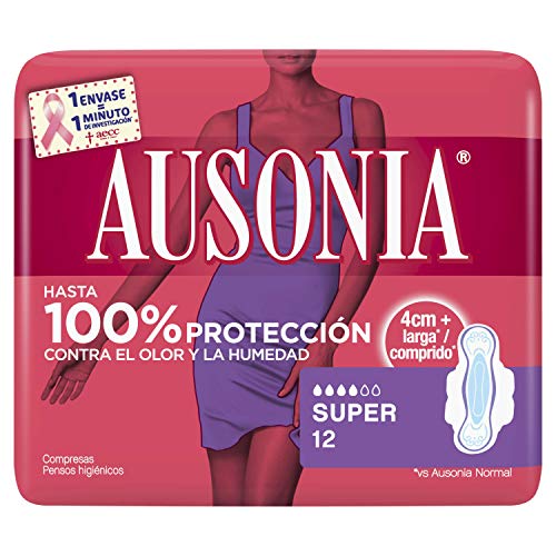Ausonia Super Compresas con alas absorbentes, neutralizan el olor, finas, 12 unidades
