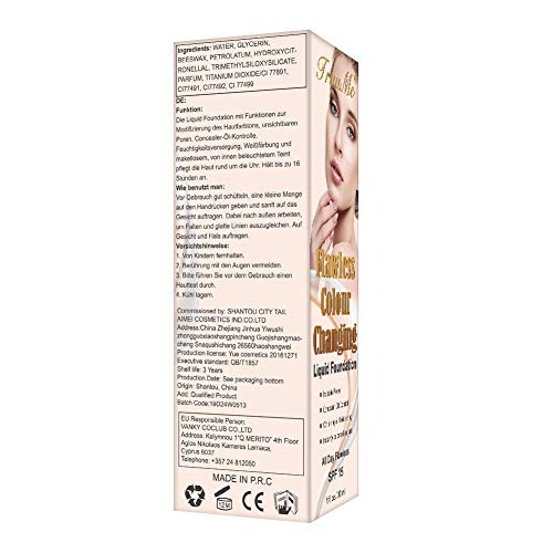 - Entonces, como el maquillaje se mezcla completamente con la piel, se transforma intuitivamente en el tono de tu piel durante todo el día, con un color natural en tu tono perfecto. Tenga en cuenta: este producto es más adecuado para el tono de piel blanco y amarillo, el efecto de color de piel negro puede no ser tan obvio como los dos primeros colores de piel.