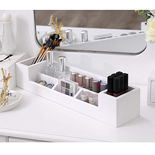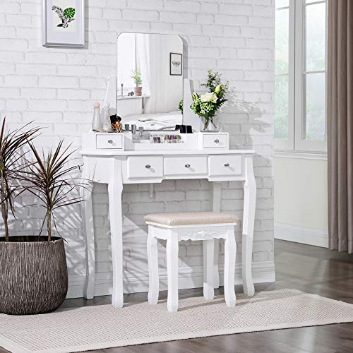 - ESPEJO SIN MARCO: Un espejo giratorio de 360° te da un maquillaje más refinado y un reflejo más completo. El tocador también se puede utilizar como mesa de oficina en casa quitando 2 cajones pequeños y el espejo