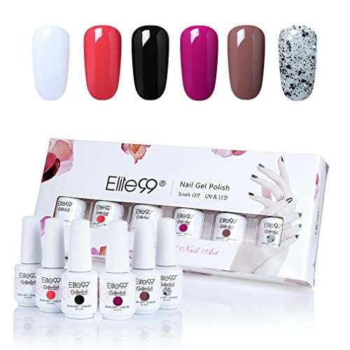 Elite99 Esmalte Semipermanente UV LED 6pcs Kit Uñas de Gel Pintauñas con Base y Top Coat Semipermanente Esmalte de Uñas Soakoff Manicura - 003
