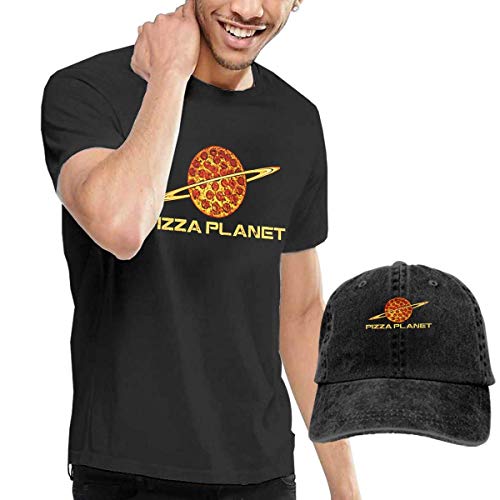 Baostic Camisetas y Tops Hombre Polos y Camisas, Men's Black Short Sleeve Shirts, Pizza Toy Planet Casual T Shirt + Baseball Cap