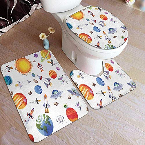 Sun Stars Planet Toy Rocket Área de baño Alfombra Vivid Alfombrilla de baño sin decoloración Alfombrilla de baño Alfombra de baño Lavable Juego de 3 Piezas