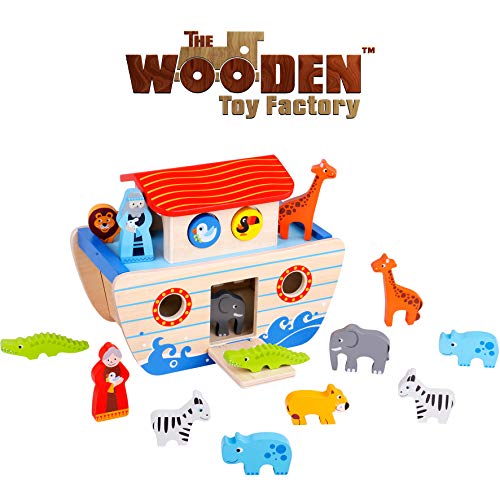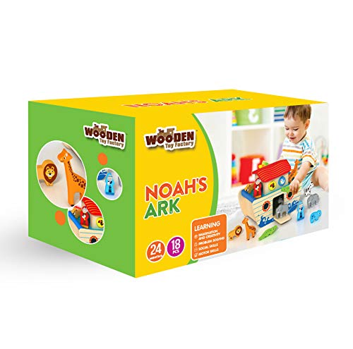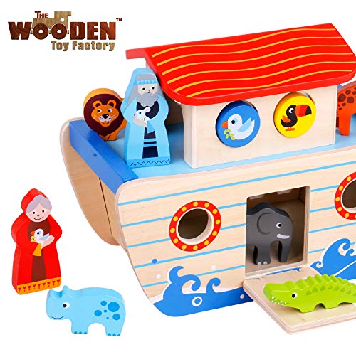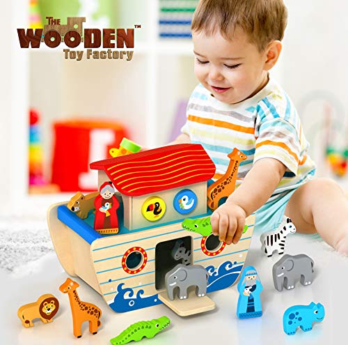 The Wooden Toy Factory - Set de Juegos del Arca de Noé - Juguetes Didácticos de Madera para Bebés de 24 Meses Niños de 2 Años