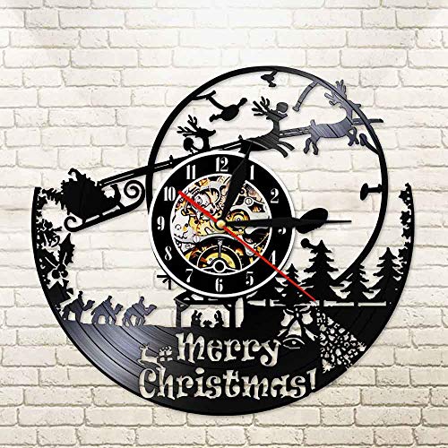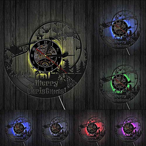 Con Iluminación Led 7 Colores,Reloj Moderno De Feliz Navidad, Reloj De Pared Con Cd Vinyl De Santa Claus, Reloj De Pared, Reloj De Navidad Para El Padre Y Santa Claus