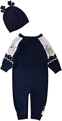 ZOEREA Jumpsuit de Mono Bebé Niños Unisex de Manga Larga Jersey de Algodón de Ciervo Hecho Punto Navidad Recién Nacido y Bonnet