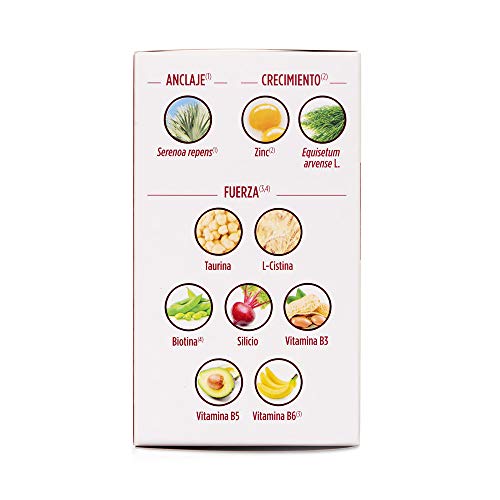 - Cápsulas de triple acción para prevenir la caída del pelo y estimular el crecimiento del mismo: anclaje, crecimiento, fuerza