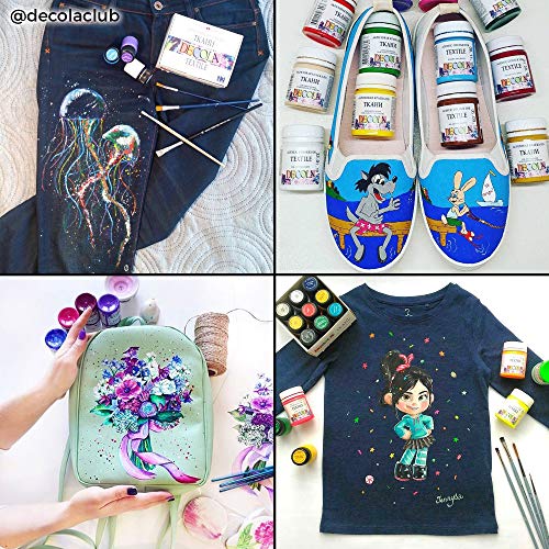 - PINTA CON PINCELES, MOLDES, ESTÉNCILES, Y DEDOS también, y podrás crear obras maravillosas sobre tu ropa favorita- la pintura para ropa acrílica a base de agua es atóxica, vegan, no tiene olor, no causa reacciones alérgicas y satisface todas las leyes europeas de seguridad. Esta pintura para ropa permanente puede ser utilizada desde 3 años de edad